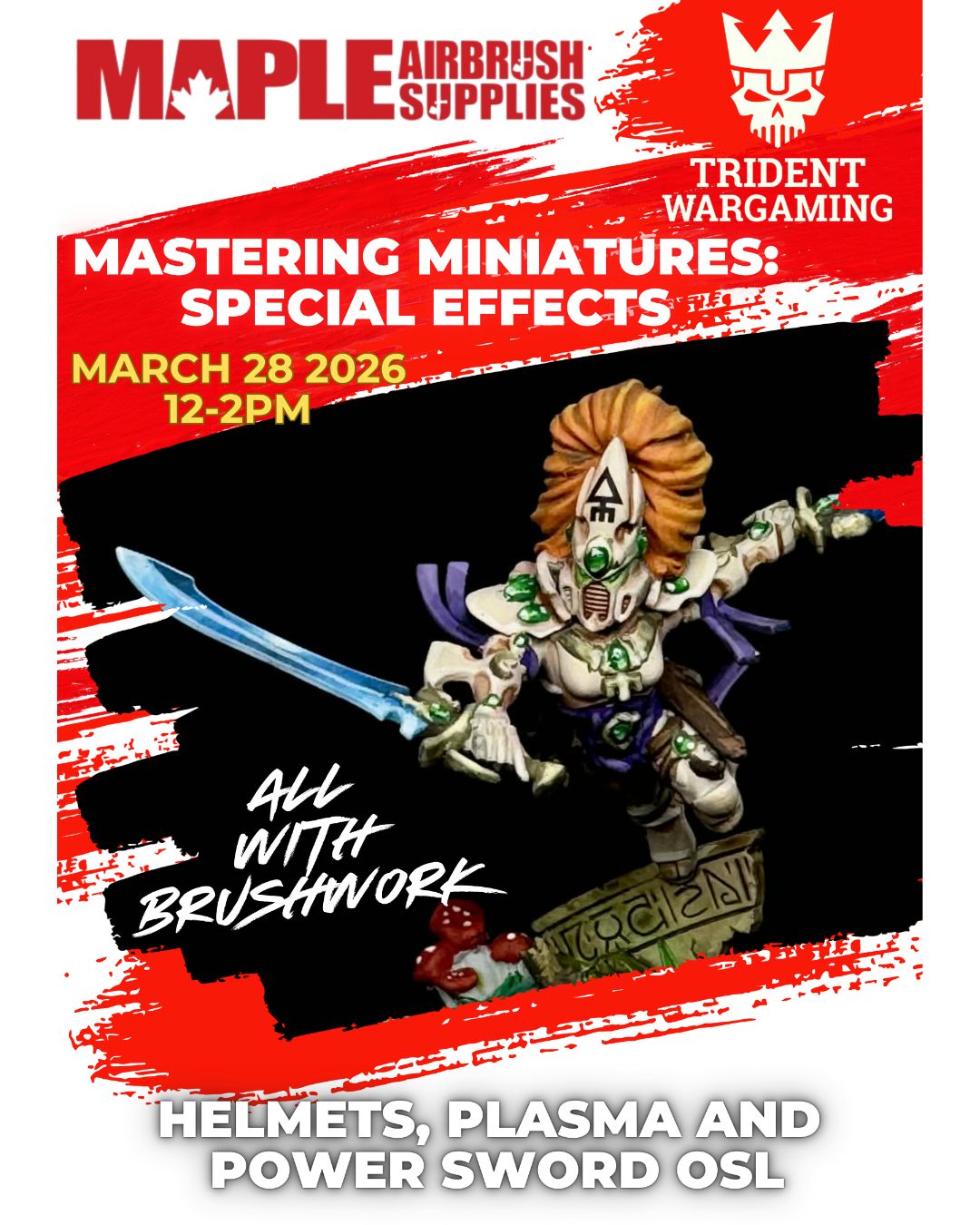 This course will teach a hands-on approach to a series of fundamentals to make your miniatures look and feel like they belong in the 41st millennium! Students will learn how to blend power swords in a colour of their choice with a brush, learn how to paint glow effects with a brush in a couple different ways, and try out their hand at adding some bounce lighting.